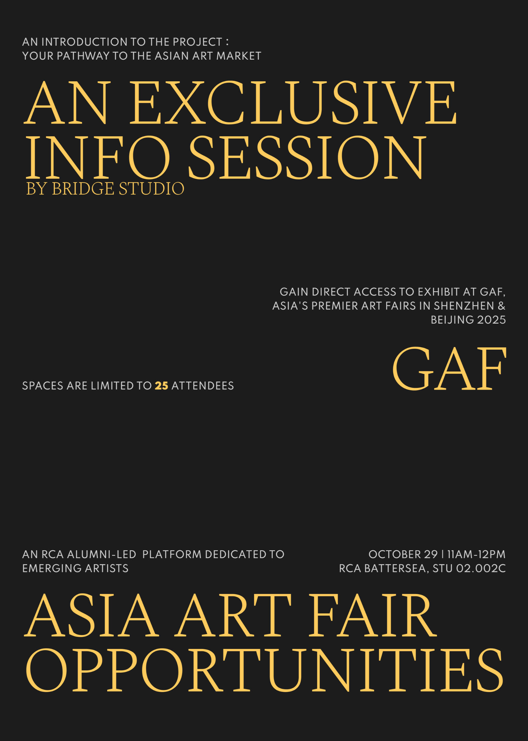 An exclusive info session by Bridge Studio for RCA students. Discover how we help you take your work beyond the frame and into Asia's leading art fairs.